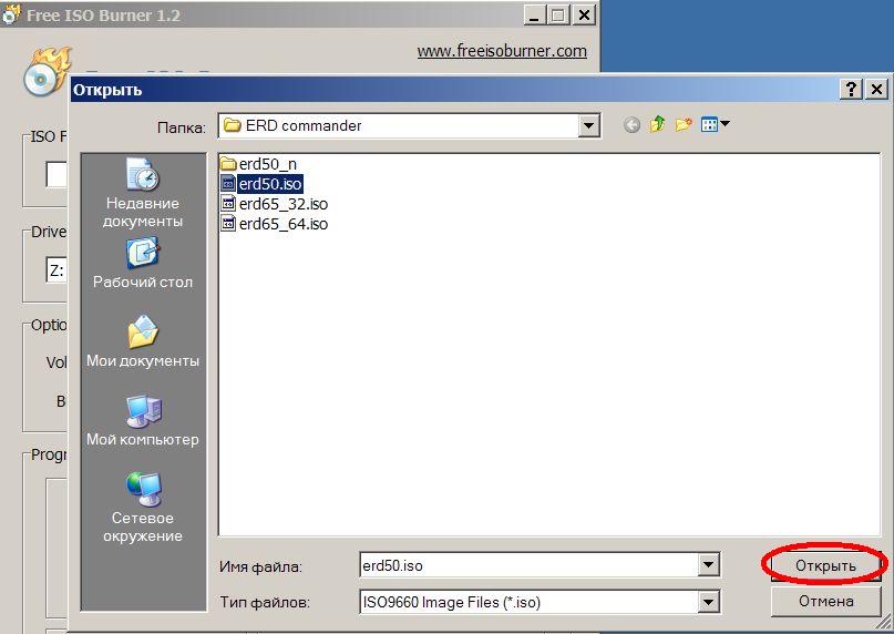 3. Выбираете ISO файл, который нужно записать на CD и нажмите кноку ОТКРЫТЬ.